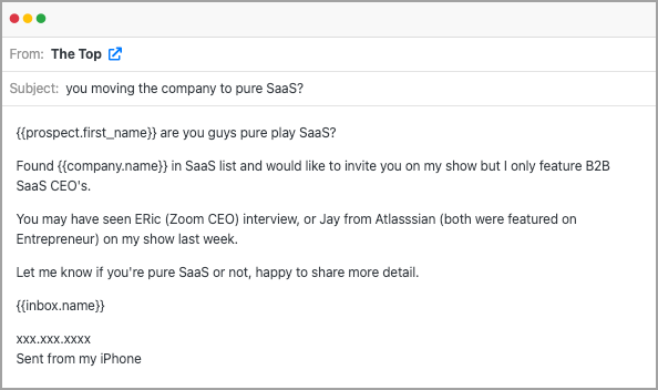 It’s brief but the recipient will immediately see why they’re being cold emailed and if they think it’s a good fit, they’ll respond.